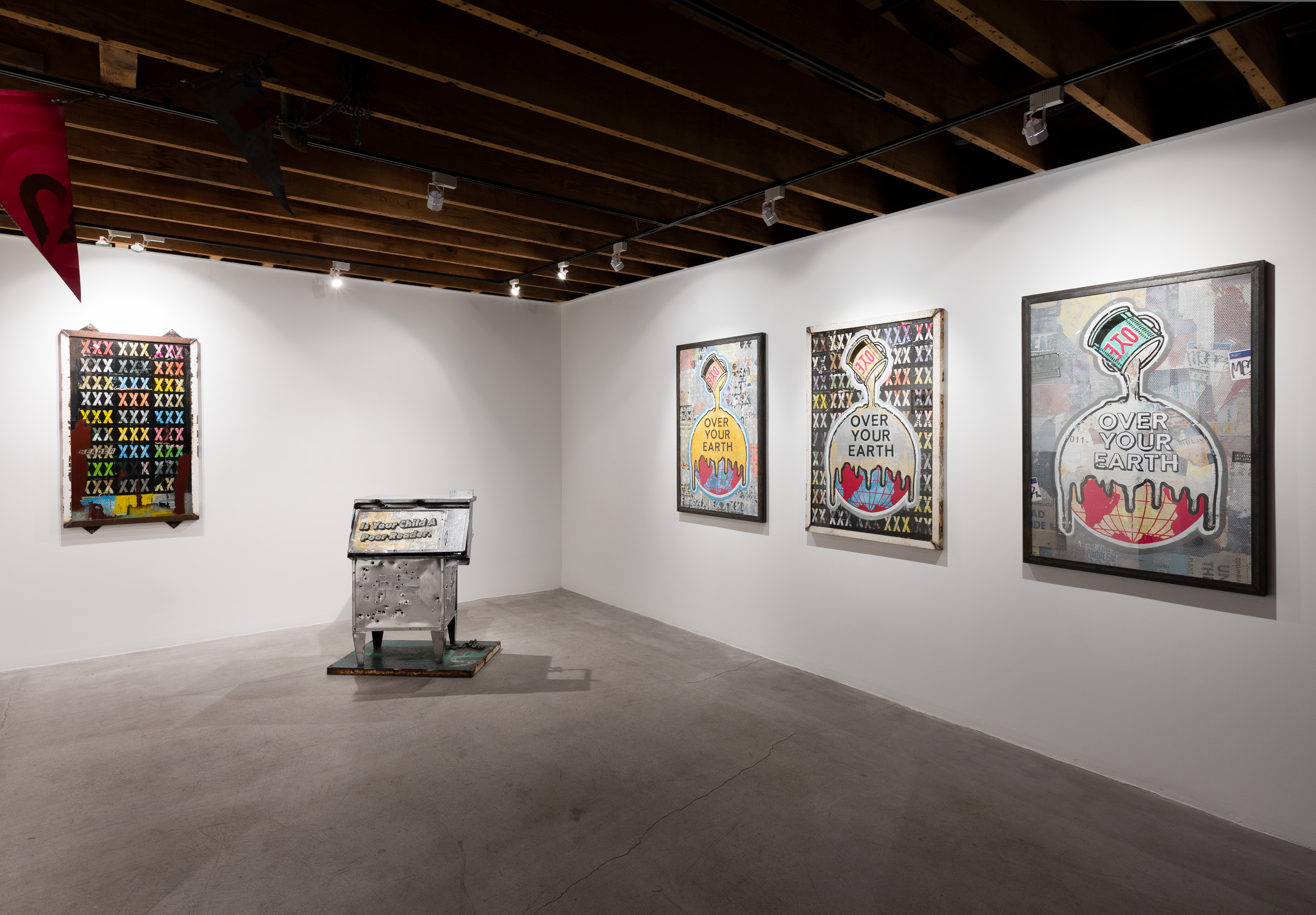 Traveling repeatedly throughout the US, The Reader has quiet literally made a name for himself that is there for all to see. Leaving a mass of public adornments for over a decade, Reader has maintained an illusiveness and anonymous presence in a desolate grey zone between so called “street art” and graffiti. In recent years Reader carried his oft-cryptic messages of literacy and inquiry into the gallery at the encouragement of his longtime friend Elias Hansen (Lawrimore Project, Seattle 2011).